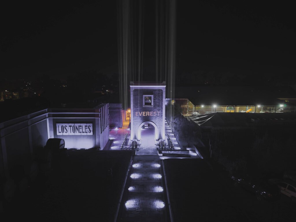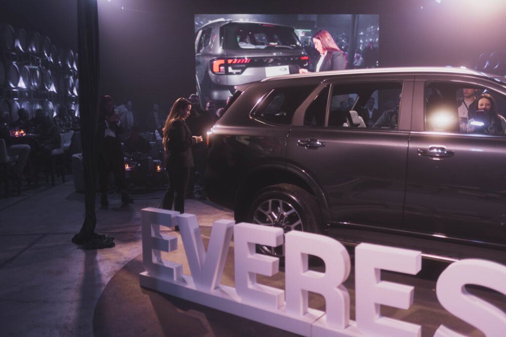 Desde la entrada a Bodega Los Toneles, el preludio de una gran puesta pudo disfrutarse con imponentes luces proyectadas hacia el cielo, en donde «Everest» fue la insignia del esperado lanzamiento oficial de la SUV. Ya en el gran salón de la elegante bodega, los invitados disfrutaron de deliciosos vinos y catering en confortables livings, mientras se esperaba con gran expectación la presentación de la Ford Everest.